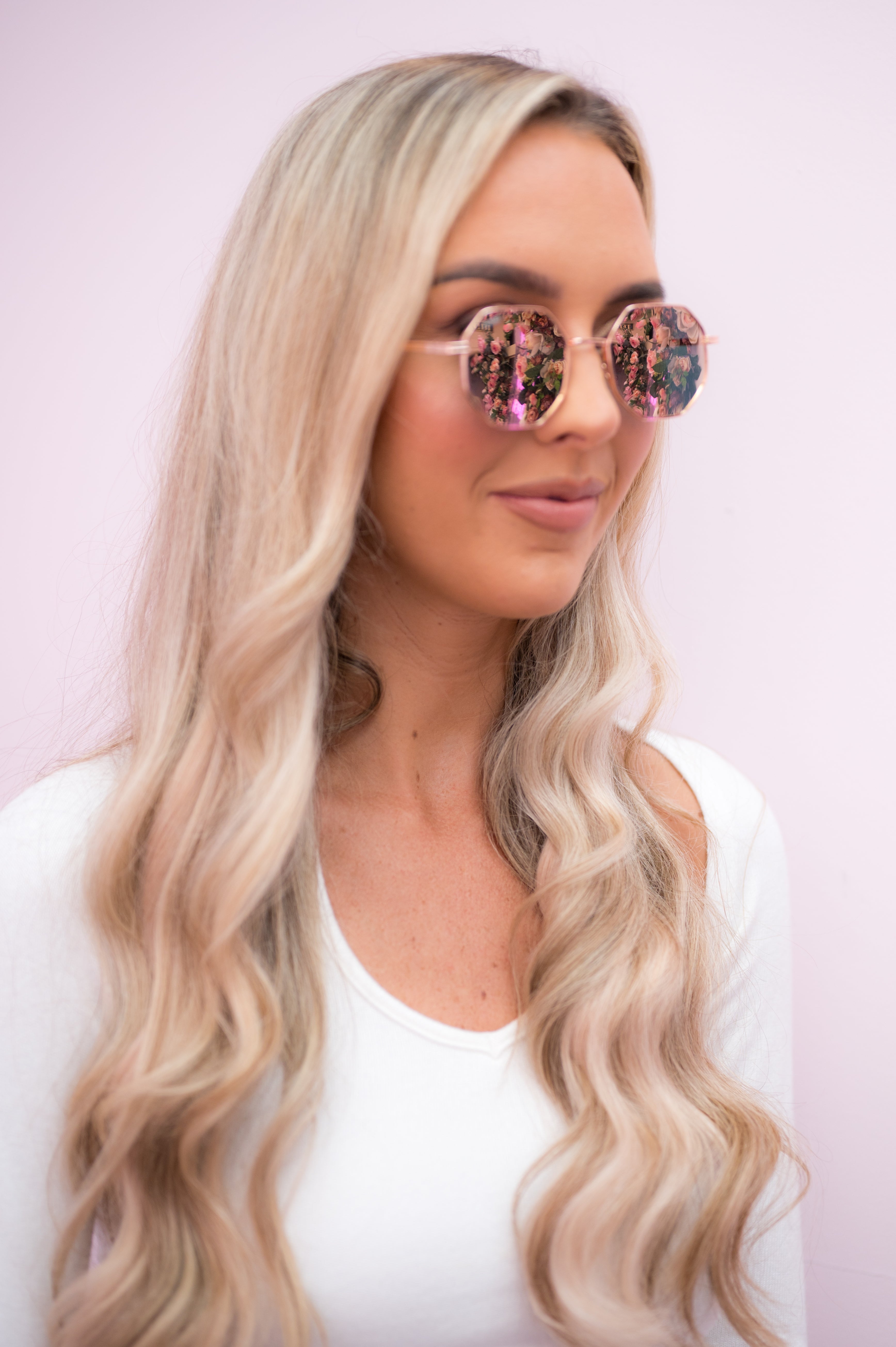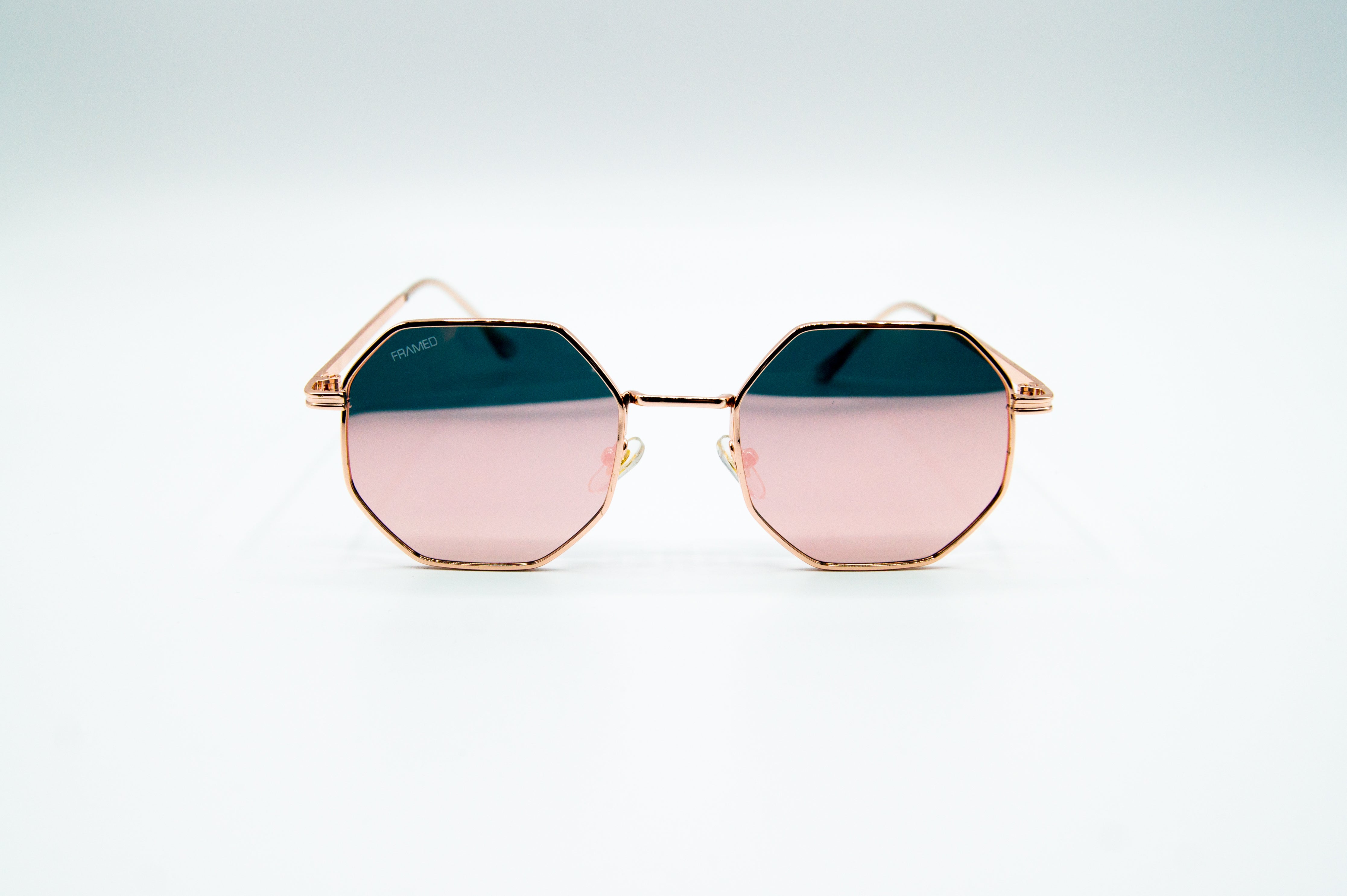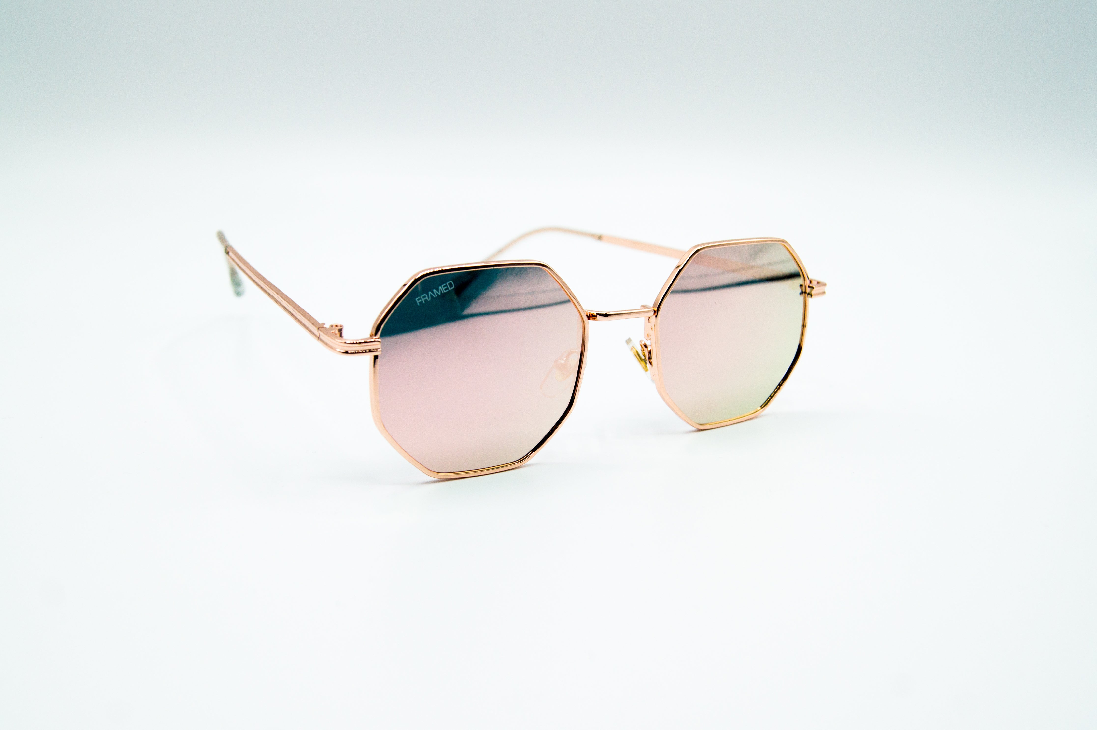 • Gold metal frame with pink mirrored lens